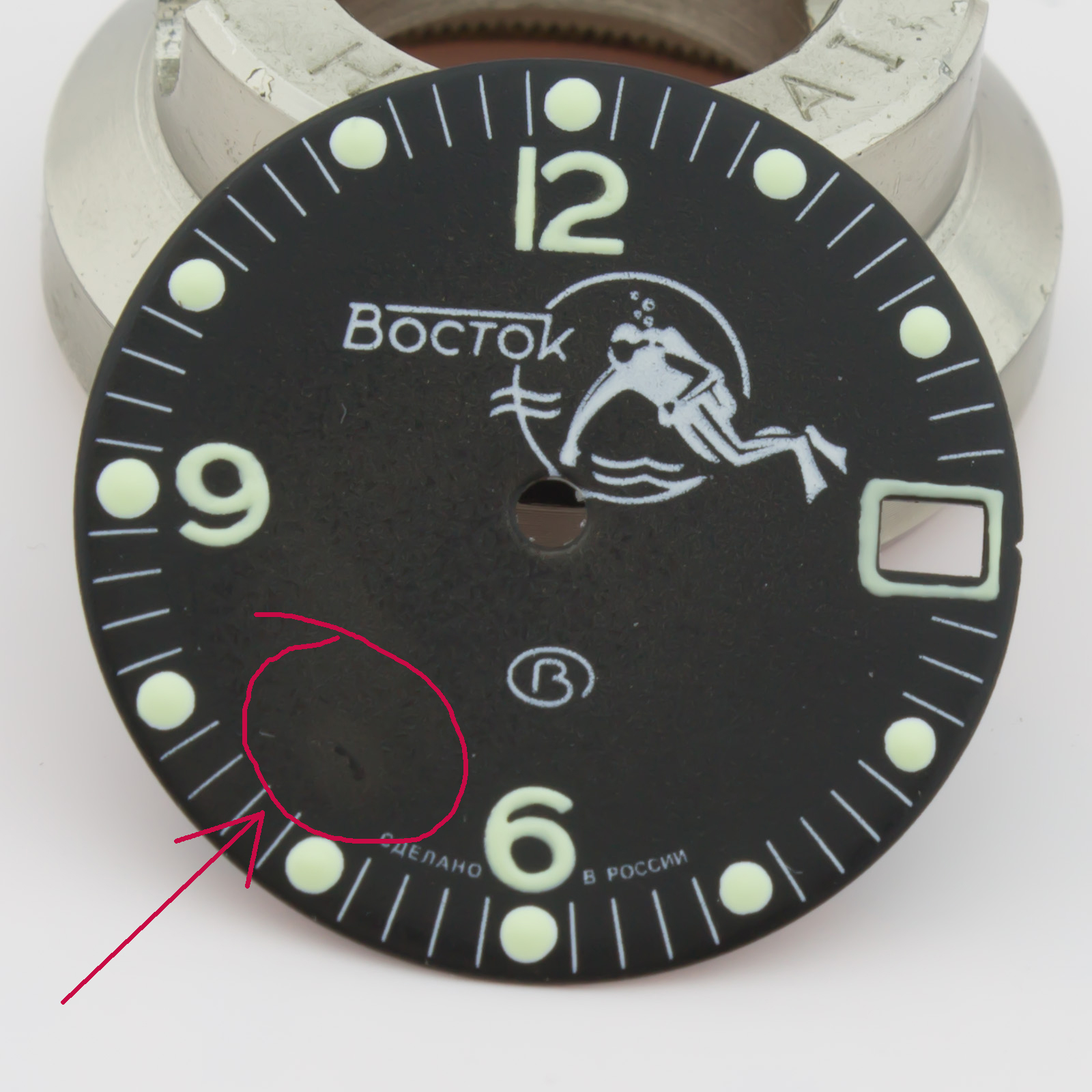 Lume dots were enlarged. There is MINOR defect near 7 - 8 hours marks (pictures are actual, check please picture with red marks).
