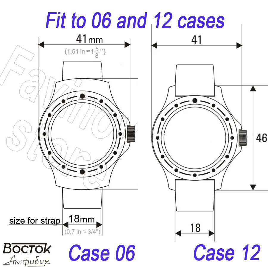 Classic design crown fit to classic Amphibia Vostok wathces in cases first digits 12 and 06.