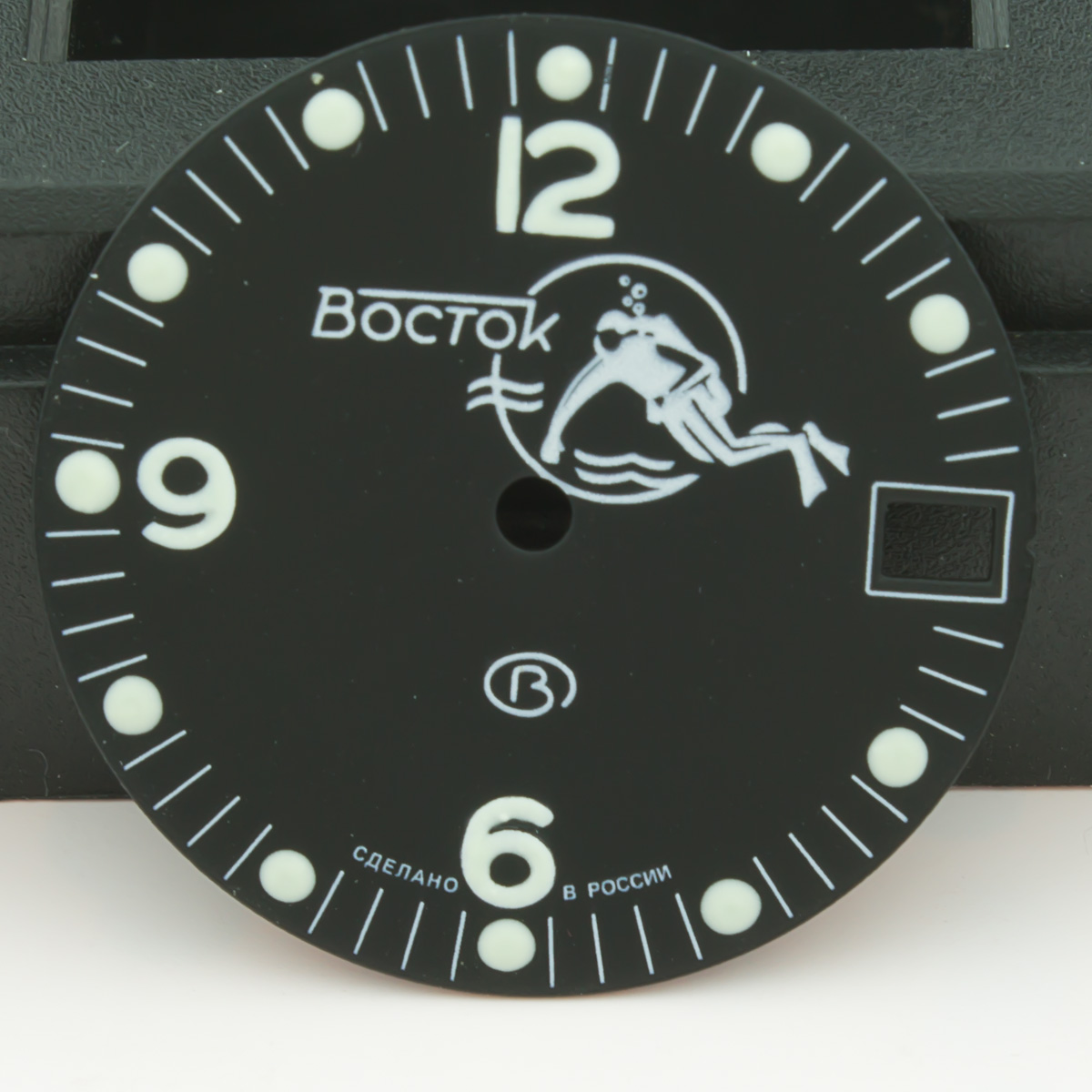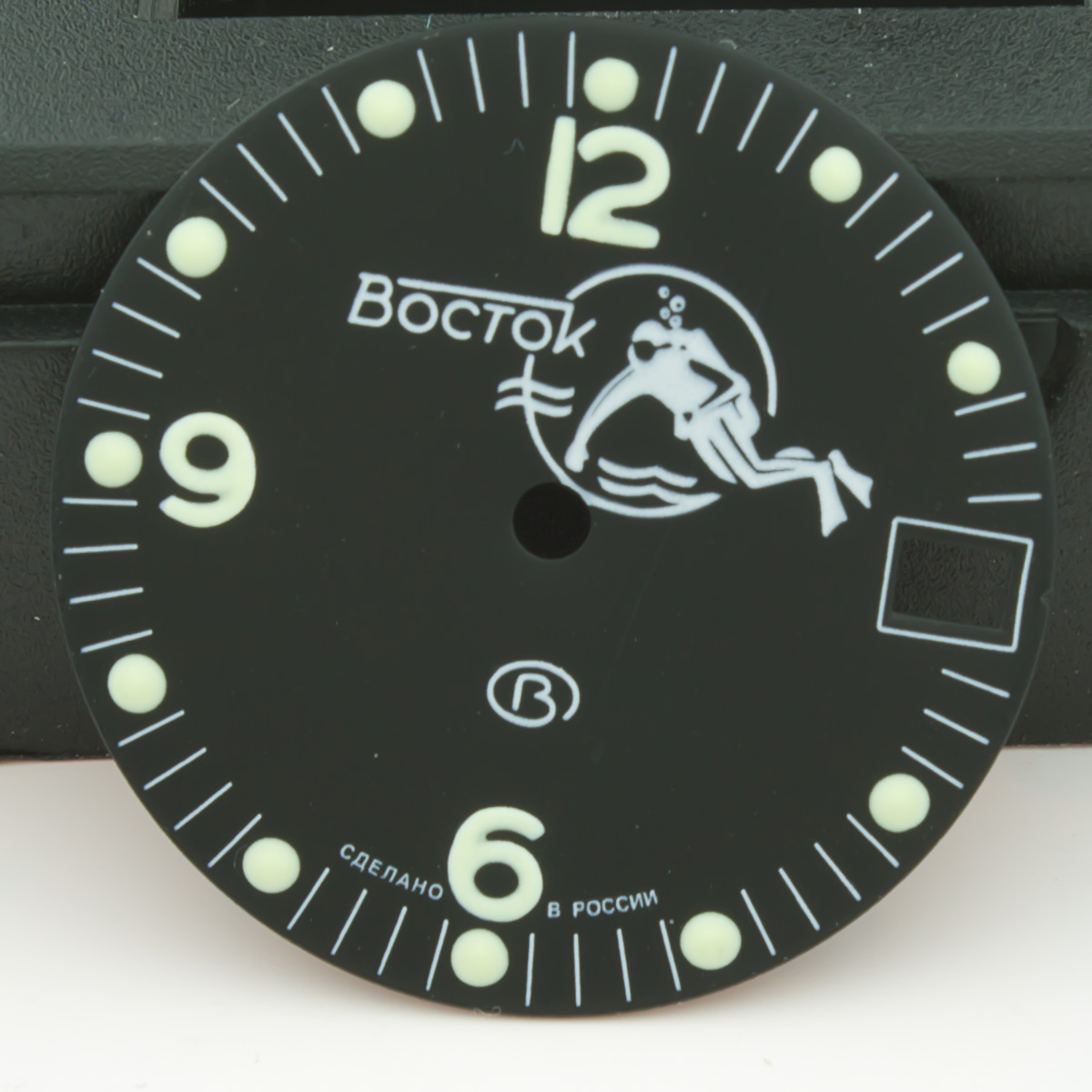 Lume dots were enlarged and lumed with much attention. Numerals lumed too. Diameter of dial is 28.5mm - fit to all models of retro & modern Amphibia & Komandirskie cases. Fit well with stock and modern watch hands. Produced by Vostok, customized by Favinov’s Enthusiast team.