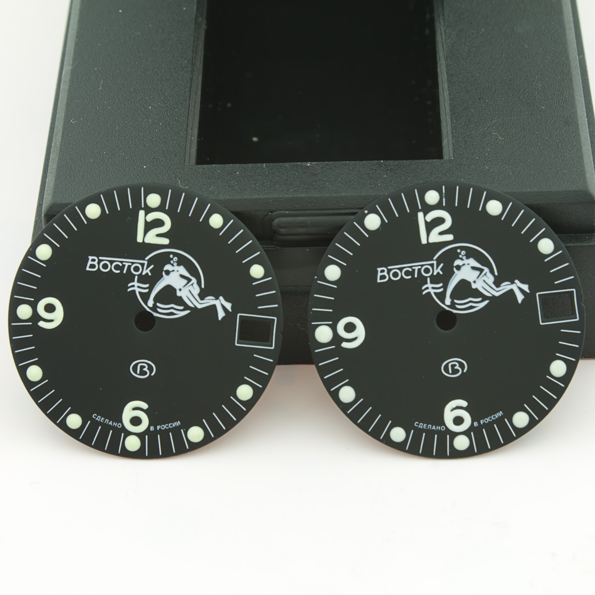 Lume dots were enlarged and lumed with much attention. Numerals lumed too. Diameter of dial is 28.5mm - fit to all models of retro & modern Amphibia & Komandirskie cases. Fit well with stock and modern watch hands. Produced by Vostok, customized by Favinov’s Enthusiast team.