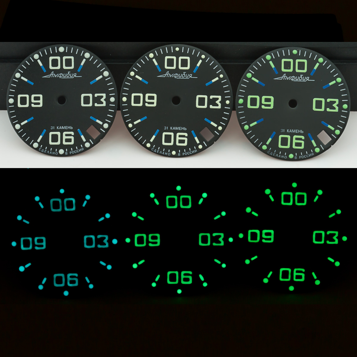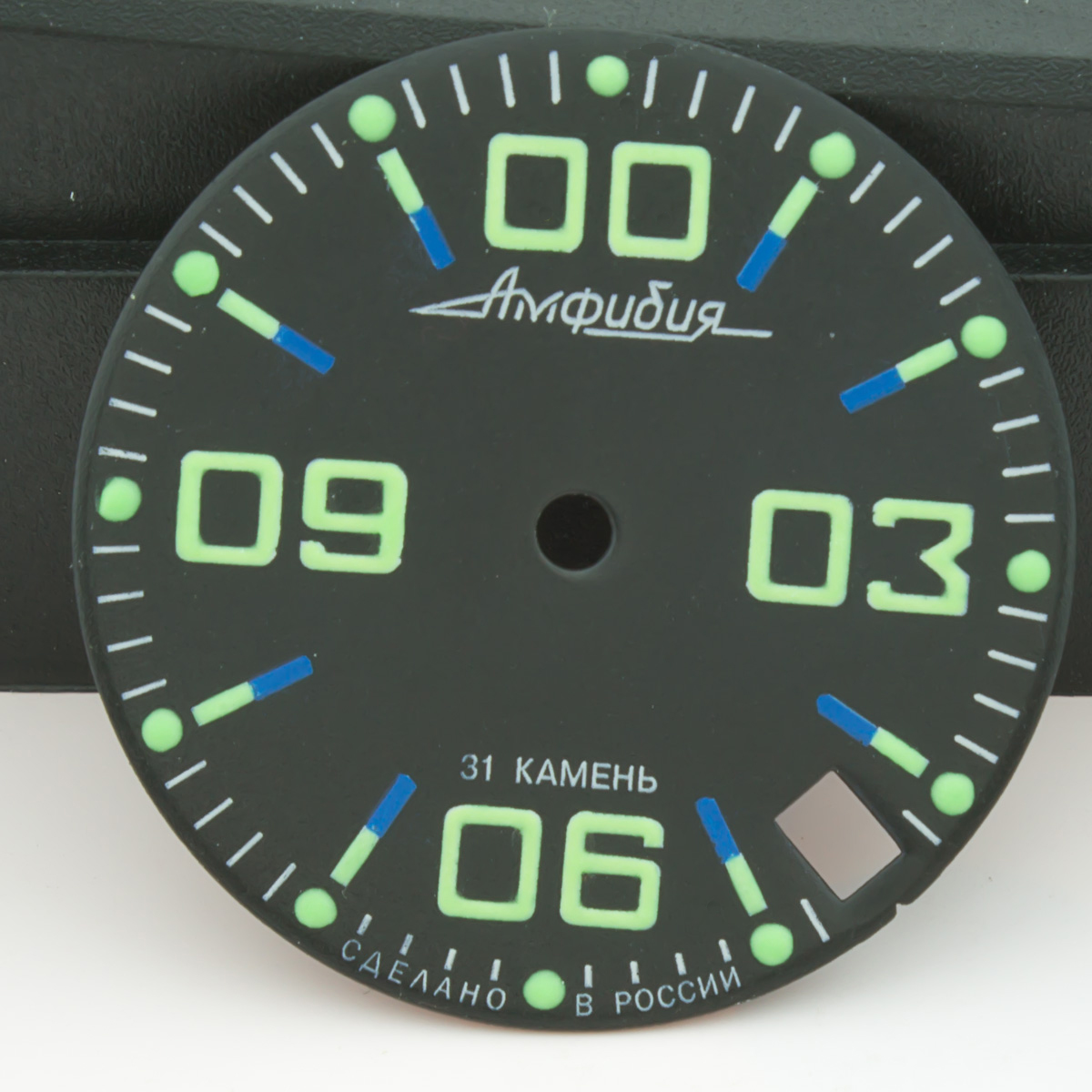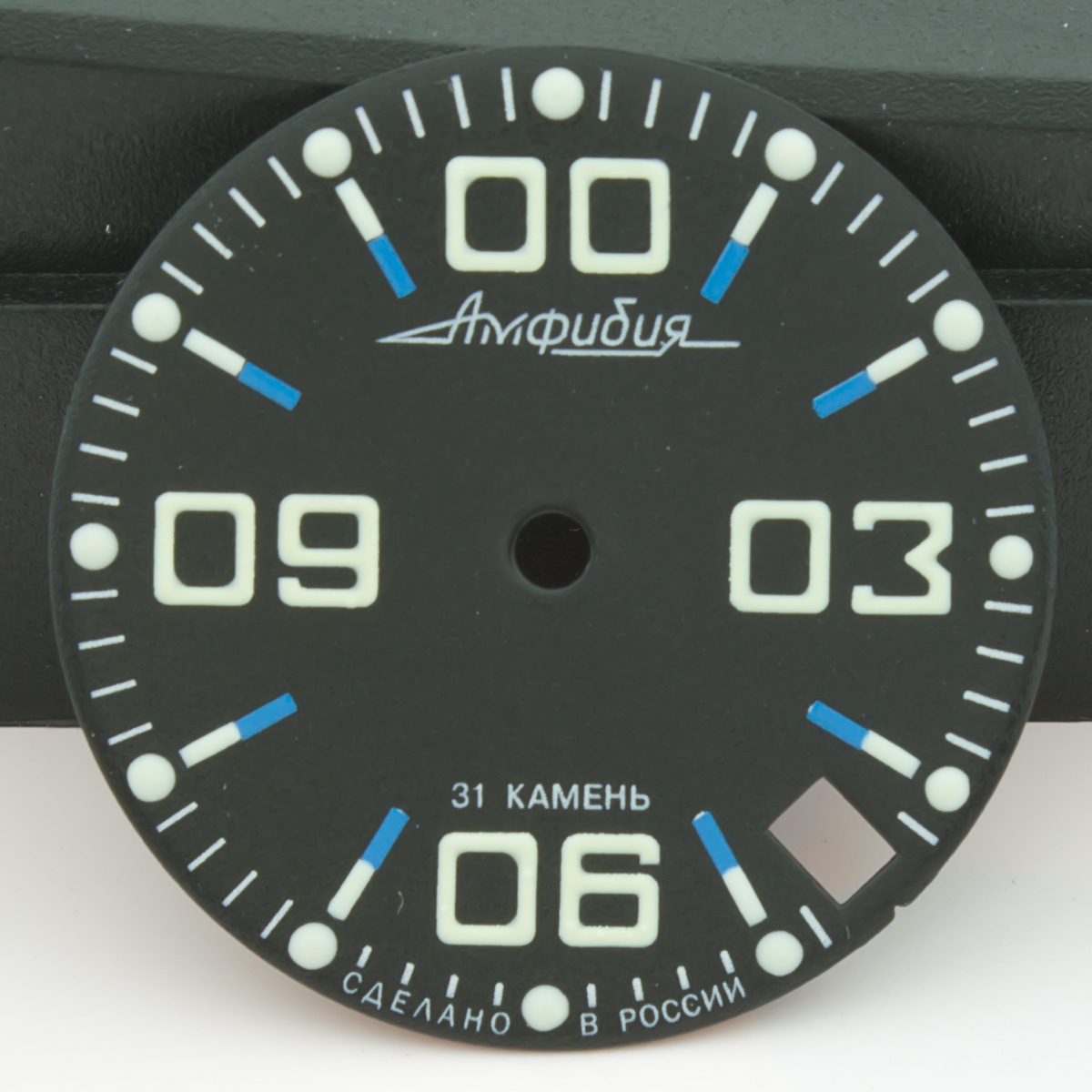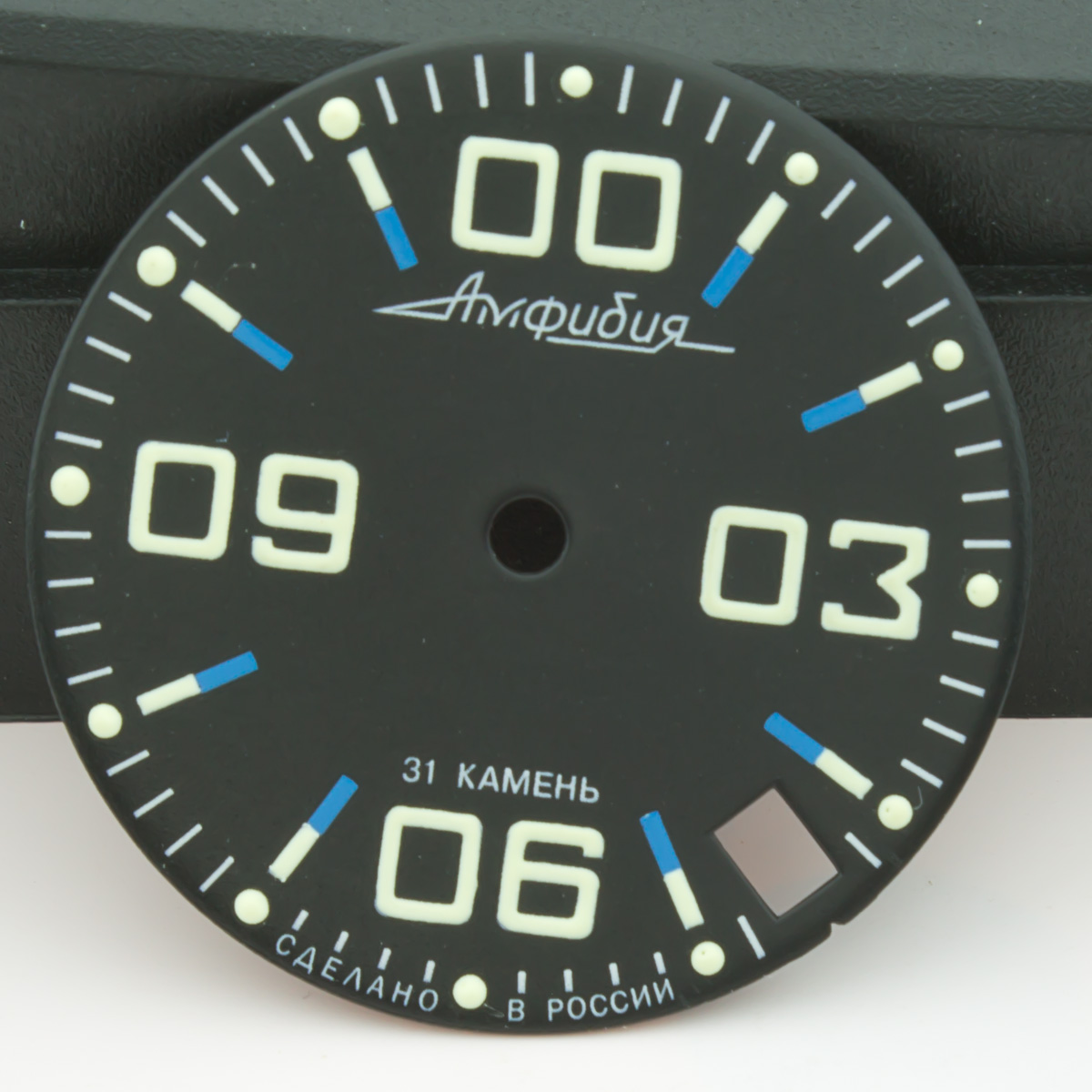 Symbols were relumed with much attention. Diameter of dial is 28.5mm - fit to all models of retro & modern Amphibia & Komandirskie cases. Fit well with stock and modern watch hands. Produced by Vostok, customized by Favinov’s Enthusiast team.