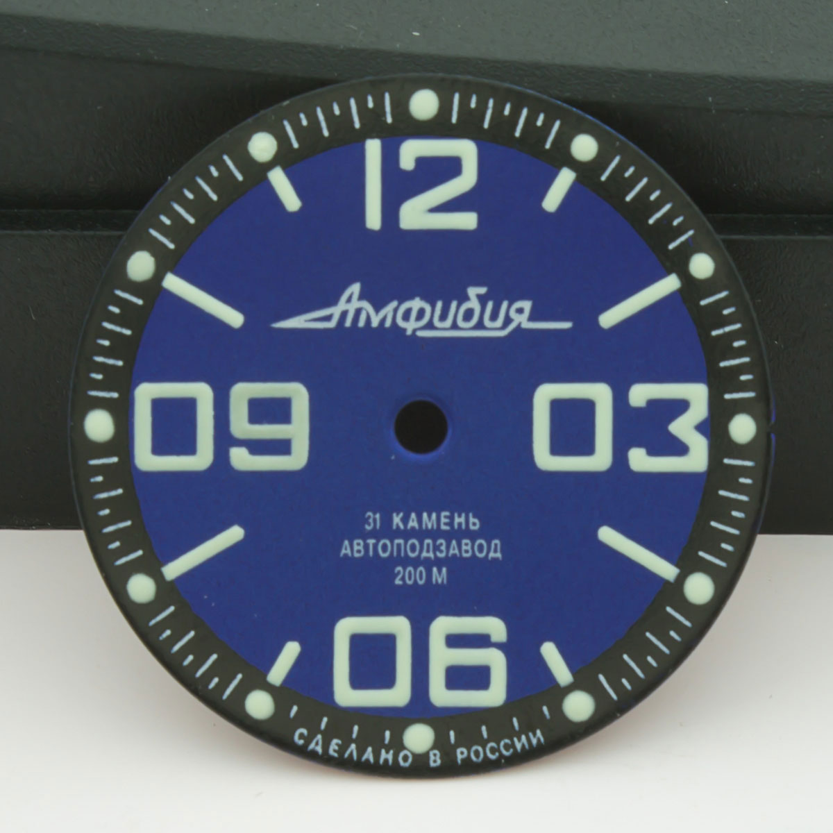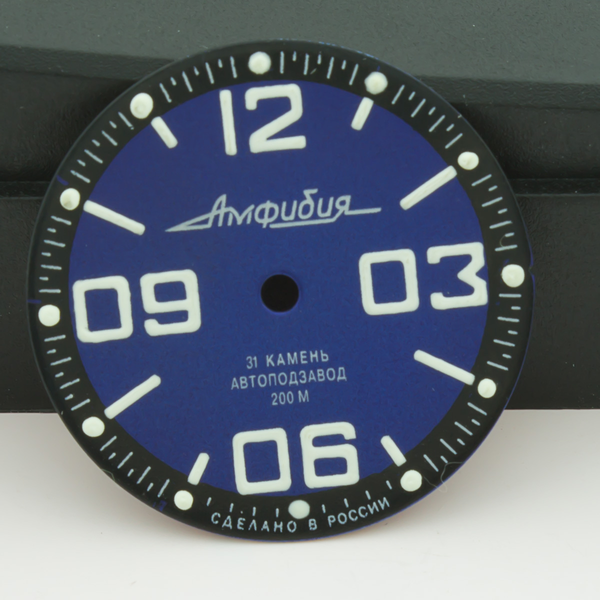 Symbols were relumed with much attention. Diameter of dial is 28.5mm - fit to all models of retro & modern Amphibia & Komandirskie cases. Fit well with stock and modern watch hands. Produced by Vostok, customized by Favinov’s Enthusiast team.