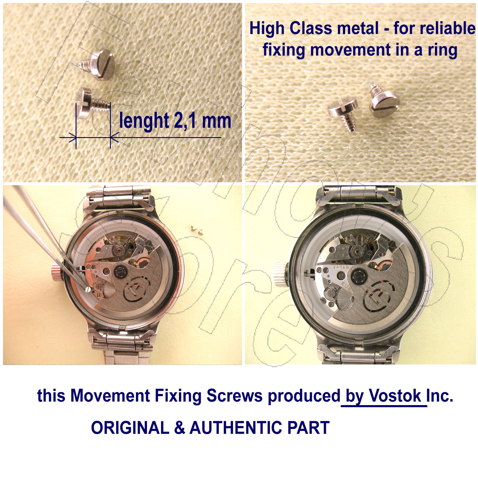 Here is a set of movement fixing screws (fit well to 24 and 22 Vostok calibers of movement) + 1pcs bezel spring.